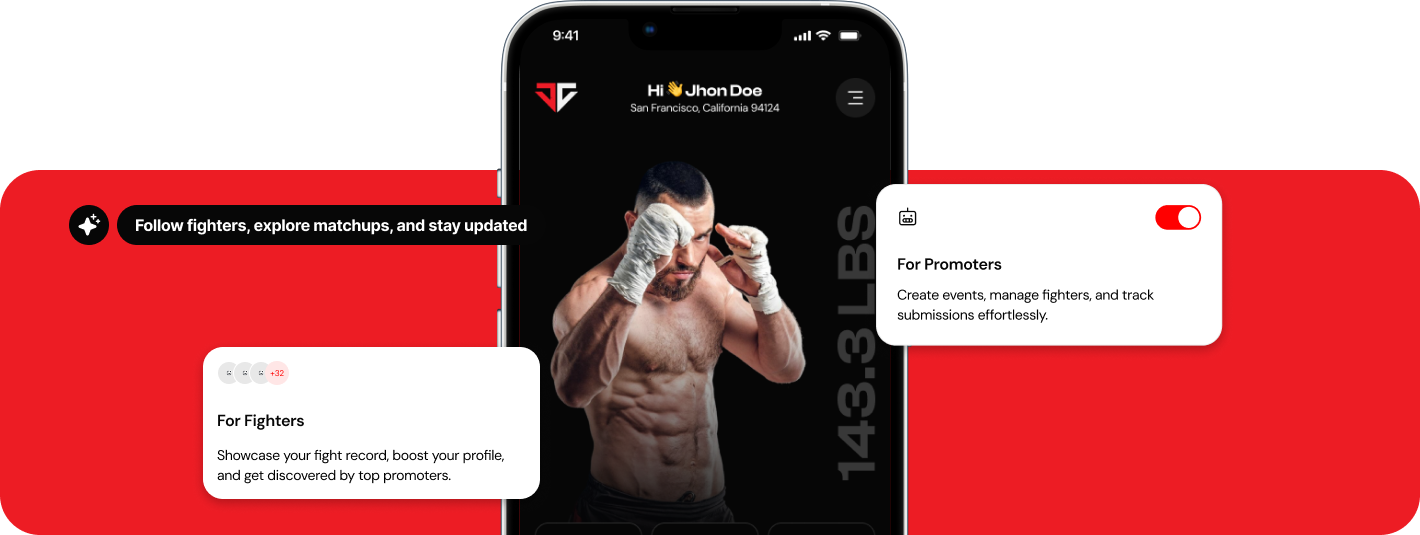 We’re introducing a platform built to simplify how fighters, promoters, and fans connect. From profile building to event management — every feature is crafted to bring transparency, efficiency, and growth to the combat sports community.
